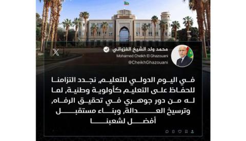 24 يناير 2026/جدد فخامة رئيس الجمهورية، السيد محمد ولد الشيخ الغزواني، في تغريدة له اليوم السبت ع