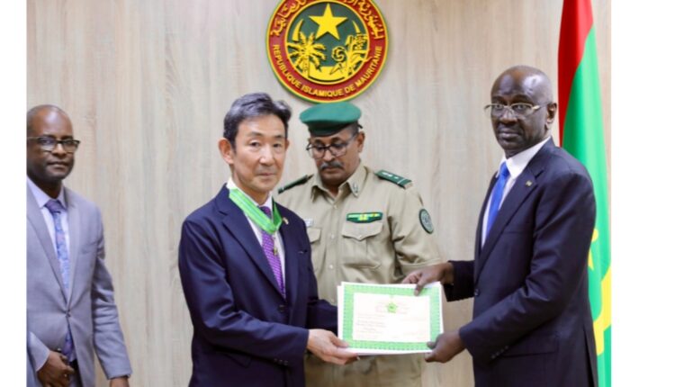 17 نوفمبر 2025/وشح معالي وزير الشؤون الخارجية والتعاون الإفريقي والموريتانيين في الخارج، السيد محمد سالم ولد مرزوك، باسم فخامة رئيس الجمهورية السيد محمد ولد الشيخ الغزواني، اليوم الاثنين بمقر الوزارة، سعادة السيد انشيدا تاتسوكوني، سفير إمبراطورية اليابان، بوسام كوماندور في نظام الاستحقاق الوطني، وذلك بمناسبة انتهاء مهامه في موريتانيا.
